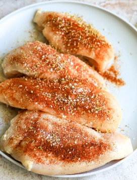 Mix chicken with fresh garlic, onion powder, chipotle, smoked paprika, salt, pepper. and olive oil