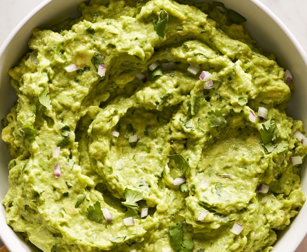 Mix mashed avocado in a medium bowl with 1/2 tsp salt, 1 Tbsp cilantro and onion if you like.